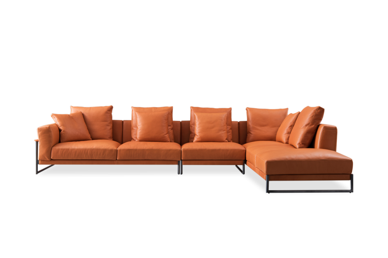 Prepare to get cozy on a sofa that offers the pleasant sensation of inviting warmth and comfortable softness. A project that originated from a rational thought: a seating system attained through the clustering of geometric upholstered pieces, soft as cushions, outlined with a profile trim that traces their silhouette and resting on an elegant metal base. A clear-cut concept that translates to a linear design where AL TARF sits in perfect balance between tradition and modernity, an expression of the company’s own aesthetic language.