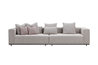 An orderly clustering of shapes, with one-piece seats  decorated with stitching that accentuates their graphic, modern personality.