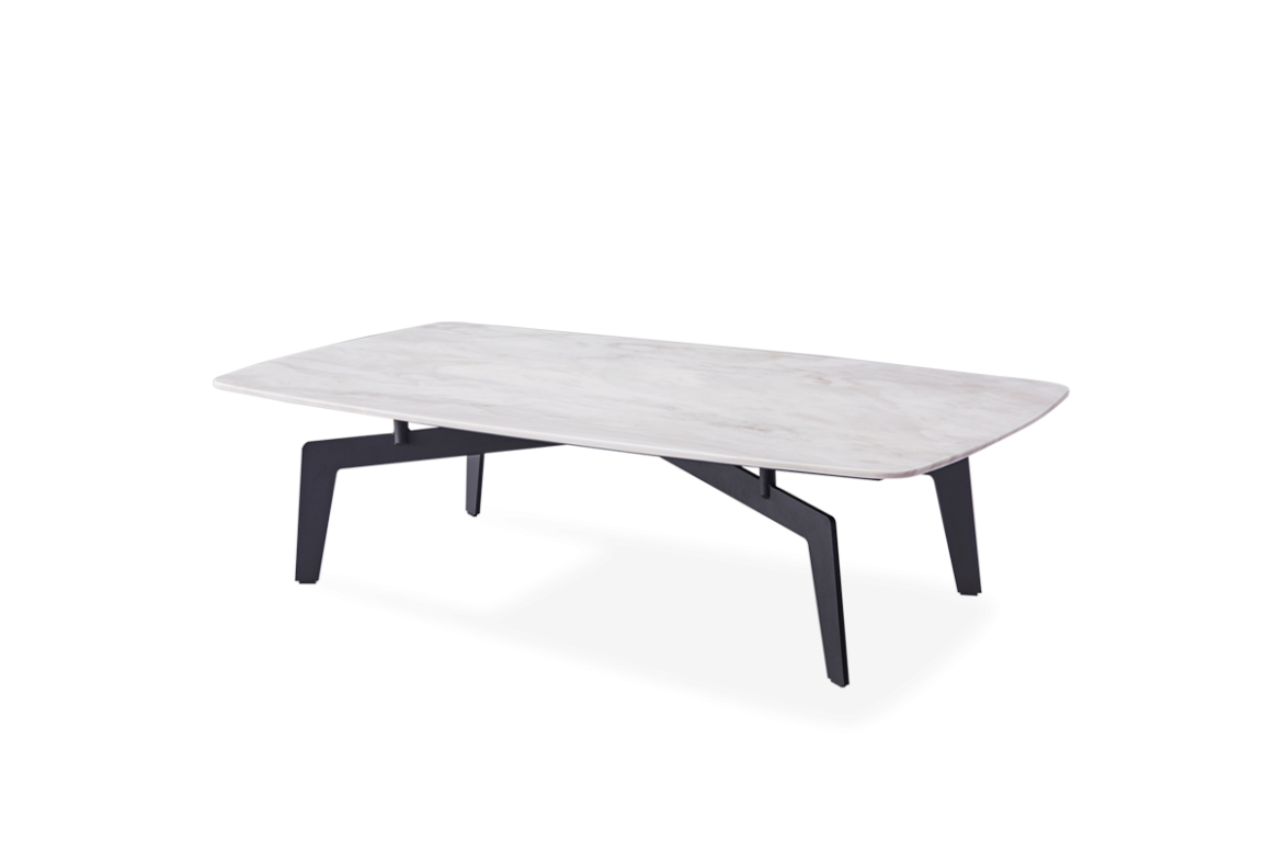 An essential perfection marks the scoffee table  collection TOKYO. Light in its image, solid and architectural in its form, the coffee table has a metal base with two legs  to support top in marble.