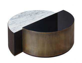 This amazing piece of art is taking its name from ancient philosophy, a concept of dualism, describing how seemingly opposite contrary forces may give rise to each other. As Yin & Yang, so contradicting, but at the same time, so closely connected together is the main philosophy of the new furniture piece. This amazing table consists  of two parts. Polished top, quality veneer, metal, glass are correlating harmoniously with marble, creating incredible ensemble that is continuously enhancing the luxury.